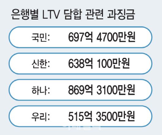 특히 금융당국에서 H지수 ELS 제재심의위원회가 진행 중인 가운데 국민·신한·하나은행의 부담이 더욱 크다. 국민은행은 ELS 관련 약 1조원, 신한·하나은행은 각 3000억원대 과징금 부과안을 사전 통보받았다. 향후 제재심, 금융위 정례회의 등을 거쳐 감경될 수 있지만 공정위 LTV 담합, 금융위 ELS 제재까지 더하면 은행들로서는 타격이 불가피하다. 은행권 관계자는 “공정위 과징금만으로는 자본비율 하락이 크지 않지만 ELS 제재까지 나오면 RWA 부담이 확 커진다”며 “생산적 금융 이행을 위한 재무·리스크 전략을 다시 조정해야 할 수 있다”고 말했다.