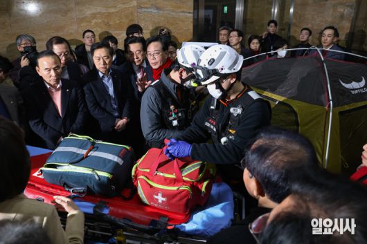 ⓒ일요시사 119소방대원들이 21일 서울 여의도 국회 로텐더홀에서 통일교·공천헌금 등 ‘쌍특검’ 수용을 요구하며 단식농성 중인 국민의힘 장동혁 대표를 병원으로 이송하기 위해 현장을 찾았으나 장 대표가 거부해 되돌아가고 있다. 일요시사=천재율 기자(1000jae@ilyosisa.co.kr) <1000jae@ilyosisa.co.kr> 저작권자 ©일요시사 무단전재 및 재배포 금지