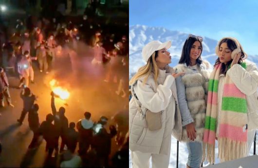 이란 반정부 시위가 이어지는 가운데 테헤란 거리에서 시위대가 불길 주변에 모여 있는 모습(왼쪽, 2026년 1월 9일). 시위 국면과 대비되는 이란 상류층 청년들의 호화로운 일상은 과거 인스타그램 계정 ‘리치 키즈 오브 테헤란’을 통해 국제적 주목을 받았다(오른쪽). AP·소셜미디어 자료사진 |