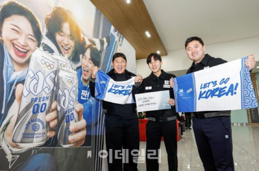 [이데일리 노진환 기자] 국가대표 맥주 카스가 20일 충북 진천 국가대표선수촌에서 '카스 0.0 응원 부스'를 운영했다. 현장에서는 간단한 퀴즈 이벤트와 응원 메시지 작성 등 코치진과 국가대표 선수단이 에너지를 충전할 수 있는 체험형 프로그램이 마련됐다. 국가대표 선수들이 직접 작성한 응원 문구를 들고 기념촬영을 하고 있다. 왼쪽부터 대한민국 유도 남자 국가대표 김민종 선수, 대한민국 근대 5종 남자 국가대표 전웅태 선수, 대한민국 양궁 남자 국가대표 김우진 선수. (사진=오비맥주)
