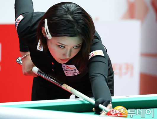 [고양(경기)=스포츠투데이 팽현준 기자] 21일 경기도 고양 킨텍스 PBA스타디움에서 열린 '웰컴저축은행 PBA 팀리그 2025-2026' 하나카드와 SK렌터카의 챔피언결정전 5차전, 4세트 혼합복식에서 SK렌터카 조예은이 공격하고 있다. 2026.01.21. [스포츠투데이 팽현준 기자 sports@stoo.com]