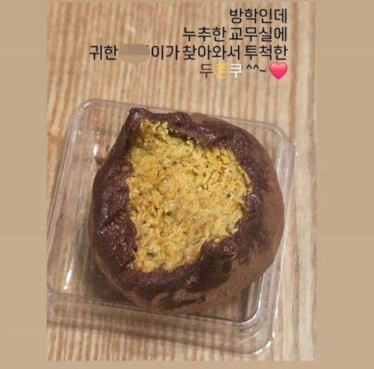 해당 교사는 자신의 SNS에 한 학생에게 받은 음식 사진을 올리며 “방학인데 누추한 교무실에 귀한 ○○이가 찾아와서 투척한 두쫀쿠…~♡”라고 적었다.