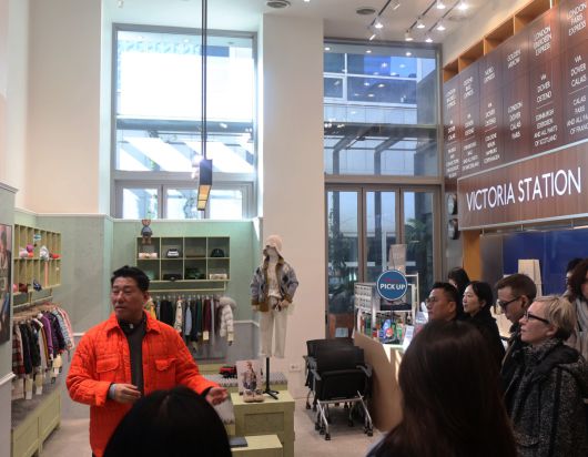 21일 명동 플래그십 스토에서 열린 '헤지스 ‘2026년 가을·겨울 시즌(26FW) 글로벌 수주회’에서 김훈(왼쪽) 헤지스 글로벌총괄크리에이티브디렉터(CD)가 바이어들에게 제품을 설명하고 있다. |