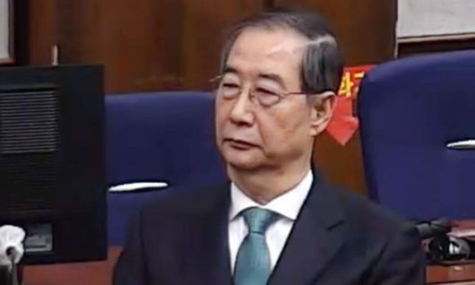 판결 이유를 설명하는 동안 자리에 앉아 있던 한 전 총리는 재판장이 주문을 읊기 전 자리에서 일어났다. ‘징역 23년’이란 말에도 겉으론 크게 동요하는 듯이 보이지 않았다. 공소사실 중 허위공문서행사에 대해 무죄 판결을 관보나 신문 등에 게재하길 원하냐는 재판장 질문에 작은 목소리로 원하지 않는다는 취지로 답했다.