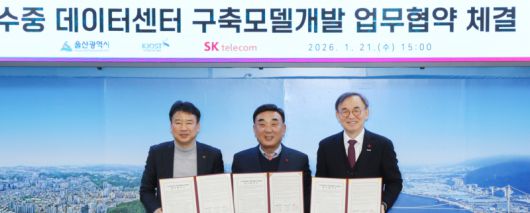 [서울경제TV=최동수 인턴기자] SK텔레콤(SKT)은 울산시와 한국해양과학기술원과 울산 수중 데이터센터 구축 모델 개발 참여를 위한 업무협약을 체결했다고 21일 밝혔다.