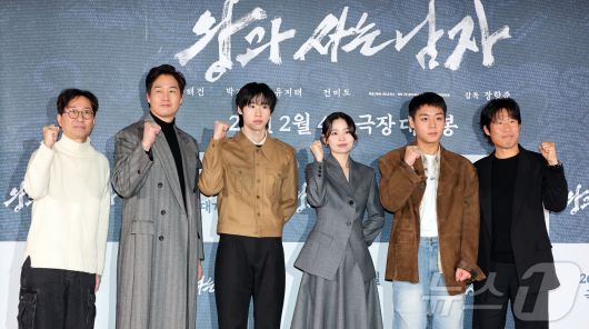 (서울=뉴스1) 김진환 기자 = 장항준 감독(왼쪽부터), 배우 유지태, 김민, 전미도, 박지훈, 유해진이 21일 오후 서울 강남구 코엑스 메가박스점에서 열린 영화 ‘왕과 사는 남자’ 기자간담회에서 포즈를 취하고 있다. '왕과 사는 남자'는 1457년 청령포, 마을의 부흥을 위해 유배지를 자처한 촌장과 왕위에서 쫓겨나 유배된 어린 선왕의 이야기로, 내달 4일 개봉한다. 2026.1.21/뉴스1
