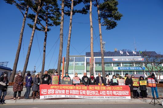 설악산국립공원지키기국민행동과 케이블카반대설악권주민대책위원회는 21일 군청 앞에서 기자회견을 열고 "정치적 이해타산에만 매몰됐던 설악산 오색케이블카 사업이 추악한 실체를 드러냈다"며 "설악산 오색케이블카 사업은 양양군정을 송두리째 무너뜨린 거대한 재앙이다. 국민 생명을 담보로 한 '행정 범죄', 붕괴 직전의 설악산 오색케이블카 사업을 즉각 폐기하라"고 요구했다.