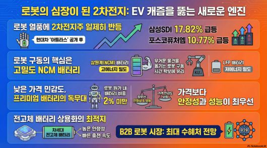 전기차 수요 정체(캐즘)의 늪에 빠져 부진을 면치 못하던 2차전지주가 ‘로봇’이라는 새로운 성장 엔진을 달고 반등의 신호탄을 쏘아 올렸다. 최근 증시를 주도하고 있는 반도체, 조선, 방산 등의 빠른 순환매 장세 속에서 2차전지가 ‘로봇 테마’의 핵심 파트너로 재평가받으며 시장의 이목이 쏠리고 있다.