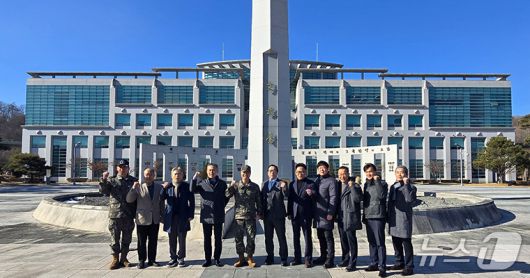 박정진 특임부총장을 비롯한 경남대 관계자들이 21일 육군학생군사학교에서 학교 관계자들과 기념사진을 촬영하고 있다.(경남대 제공. 재판매 및 DB금지) |