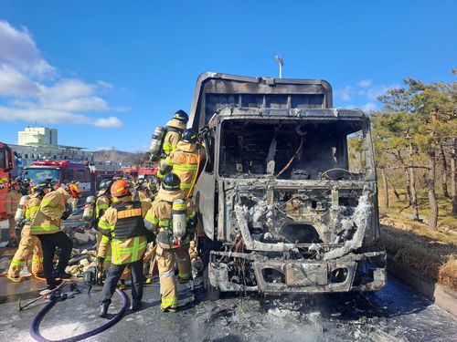 (전주=연합뉴스) 나보배 기자 = 21일 낮 12시 11분께 전북 군산시 성산면 서해안고속도로 하행선 군산휴게소에서 정차 중이던 5t 트럭에서 불이 나 40여분 만에 진화됐다.