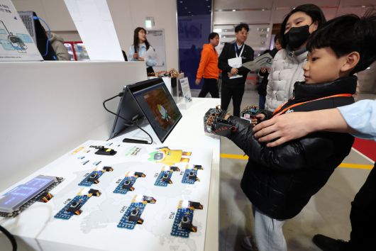 21일 서울 강남구 코엑스에서 열린 제23회 대한민국 교육박람회에서 한 학생이 로보로보 부스에서 피지컬AI 체험을 하고 있다. 뉴시스 |