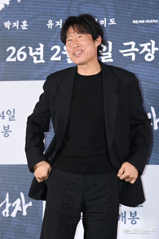 배우 유해진이 언론시사회에 참석해 포토타임을 갖고 있다.