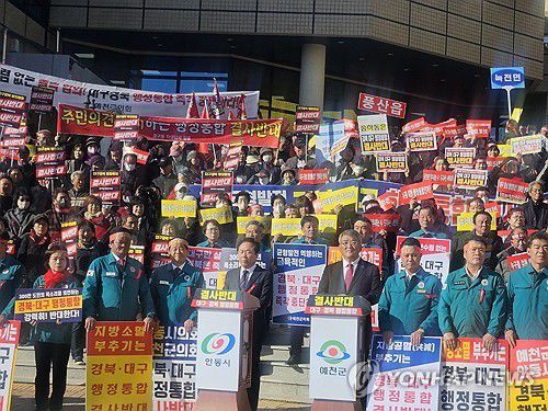 21일 권기창 안동시장은 연합뉴스와의 통화에서 "주민 공감대 없는 통합 추진에 반대한다"며 "6월 말까지 무조건 통합해야 한다고 시한을 정해두고 속도전을 하는 것도 잘못된 방법이라고 본다"고 비판했다.