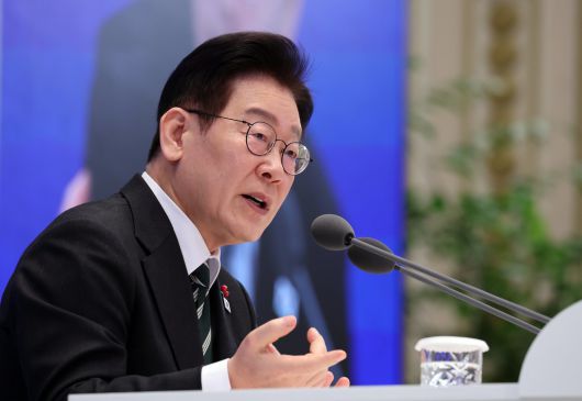 이재명 대통령이 21일 청와대 영빈관에서 2026 신년 기자회견 ‘함께 이루는 대전환, 모두 누리는 대도약’에서 기자의 질문에 답하고 있다. 청와대사진기자단 |