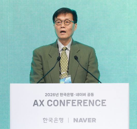 이창용 한국은행 총재가 21일 서울 중구 한국은행 콘퍼런스홀에서 열린 ‘2026 한국은행·네이버 공동 AX 컨퍼런스’에서 참석해 발언하고 있다. |