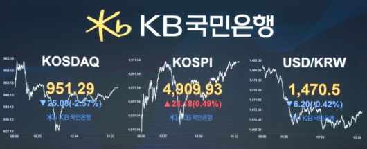 코스피가 간밤 미국 증시 급락에도 4900선을 회복한 상태로 장을 마감했다. 반면 코스닥은 급락세를 벗어나지 못했다.
