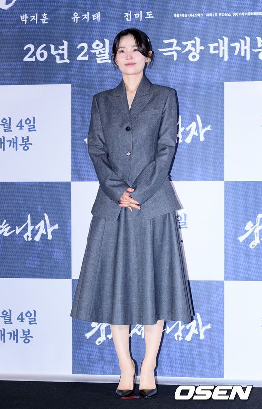 [OSEN=이대선 기자] 21일 오후 서울 강남구 메가박스 코엑스에서 영화 ‘왕과 사는 남자’ 언론시사회가 열렸다. '왕과 사는 남자'는 1457년 청령포, 마을의 부흥을 위해 유배지를 자처한 촌장과 왕위에서 쫓겨나 유배된 어린 선왕의 사연을 그린 작품으로 2월 4일 개봉한다. 배우 전미도가 포토타임을 가지고 있다. 2026.01.21 /sunday@osen.co.kr