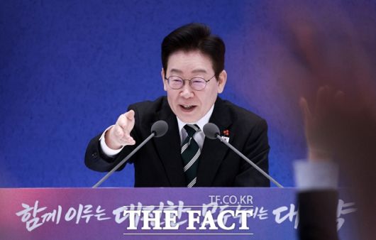 이재명 대통령이 21일 청와대 영빈관에서 열린 신년 기자회견에서 취재진의 질문을 받고 있다. /뉴시스 |