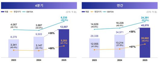 지난해 4분기 매출도 1조2857억원을 기록하며 최대 분기 실적을 기록했다. 전년 동기 대비 35% 이상의 높은 성장률이다. 영업이익은 5283억원으로 전년 동기 3148억원 대비 67.8% 증가했으나 전분기 6335억원 대비해서는 16.6% 감소했다.