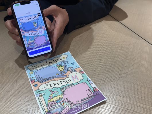 20일 도쿄에서 만난 스냅태그 민경웅 대표가 AI로 만들어진 고래 이미지를 스마트폰으로 찍어 비가시성 워터마크를 식별하고 있다. |