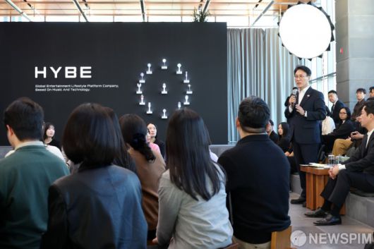 [서울=뉴스핌] 정일구 기자 = 김민석 국무총리가 21일 오후 서울 용산구 하이브 사옥에서 열린 청년 종사자 타운홀 미팅에서 인사말을 하고 있다. 2026.01.21 mironj19@newspim.com