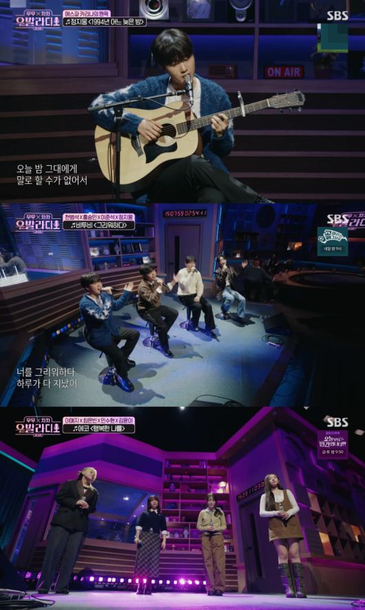 솔로 무대에서는 송지우가 '슬픔 속에 그댈 지워야만 해'로 청량한 음색과 독보적인 감성을 뽐냈다. 이어 정지웅이 '1994년 어느 늦은 밤'을 통해 부드러운 음색과 특유의 감수성을 자랑해 두 사람의 서로 다른 매력이 보는 재미를 더했다.