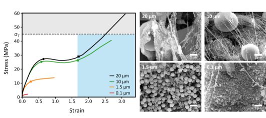 연구팀은 입자 크기에 따라 PTFE에 전달되는 응력 응력(Stress) : 물체에 외부에서 힘이 가해졌을 때, 변형에 저항하기 위해 물체 내부에서 발생하는 힘