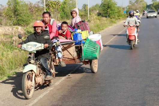 캄보디아 오다르미안체이주 분쟁 지역 인근 도로에서 주민들이 대피하고 있다. [사진=EPA연합뉴스] |