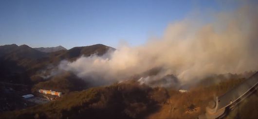 산림 당국은 산불특수진화대 55명, 산림공무원 30명, 소방 36명 총 121명을 투입해 진화 중이다. 산불진화헬기 21대, 소방차 등 진화 차량 27대도 투입했다고 밝혔다.