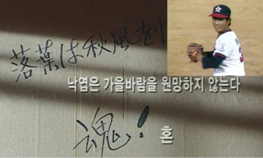 '낙엽은 가을바람을 원망하지 않는다(落ち葉は秋風を恨まない).' 비운의 투수 장명부의 사망 장소에서 발견된 자필 문구다.