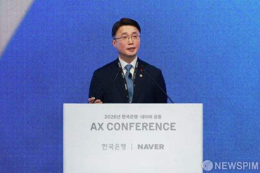 [서울=뉴스핌] 류제명 과학기술정보통신부 2차관이 21일 오후 서울시 중구 한국은행에서 열린 ‘한국은행-네이버 공동 AX 컨퍼런스’에서 기조연설을 발표하고 있다. [사진=한국은행] 2026.01.21 photo@newspim.com |