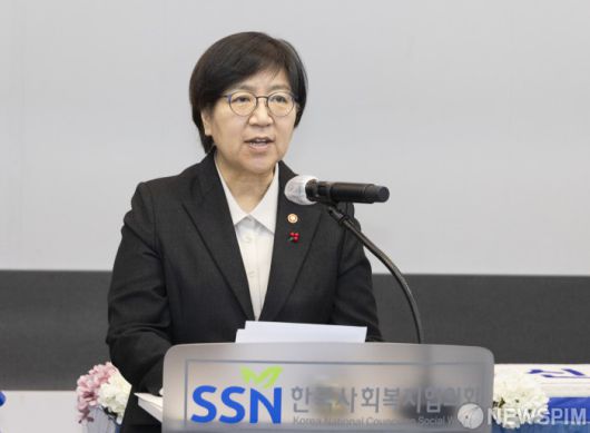 [서울=뉴스핌] 정은경 보건복지부 장관이 21일 오전 서울 마포구 한국사회복지협의회에서 열린 2026년 사회복지계 신년인사회에서 인사말을 하고 있다. [사진=보건복지부] 2026.01.21 photo@newspim.com