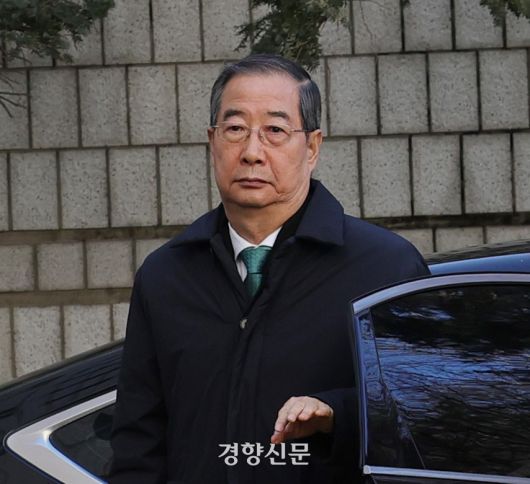 내란 중요임무종사 혐의로 징역 23년형을 선고받은 한덕수 전 국무총리가 21일 서울중앙지법에서 열린 자신의 내란 재판 선고에 출석하기 위해 차량에서 내리고 있다. 정효진 기자 |