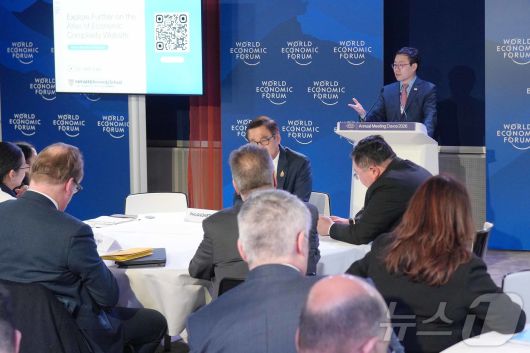 (서울=뉴스1) = 여한구 산업통상부 통상교섭본부장이 20일(현지시간) 스위스 다보스에서 열린 '2026 세계경제포럼 연차회의'에서 발언을 하고 있다.(산업통상부 제공. 재판매 및 DB 금지) 2026.1.21/뉴스1juanito@news1.krCopyright ⓒ 뉴스1. All rights reserved. 무단 전재 및 재배포, AI학습 이용 금지.