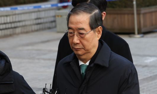 내란 중요임무 종사, 내란 우두머리 방조 등 혐의를 받는 한덕수 전 국무총리가 21일 오후 서울 서초구 서울중앙지법에서 열린 1심 선고 공판에 출석하고 있다. 최현수 기자 emd@hani.co.kr |