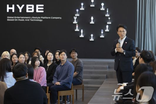 (서울=뉴스1) 청사사진기자단 = 김민석 국무총리가 21일 오후 문화컨텐츠 현장방문의 일정으로 용산구 하이브를 방문 청년종사자 타운홀 미팅을 하고 있다. 2026.1.21/뉴스1seiyu@news1.krCopyright ⓒ 뉴스1. All rights reserved. 무단 전재 및 재배포, AI학습 이용 금지.