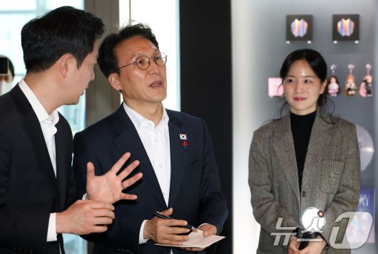 (서울=뉴스1) 청사사진기자단 = 김민석 국무총리가 21일 오후 서울 용산구 하이브 사옥을 방문해 이재상 하이브 대표이사의 설명을 들으며 홍보물을 살펴보고 있다. 2026.1.21/뉴스1seiyu@news1.krCopyright ⓒ 뉴스1. All rights reserved. 무단 전재 및 재배포, AI학습 이용 금지.
