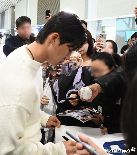 (엑스포츠뉴스 인천공항, 박지영 기자) 미국 프로야구 메이저리그(MLB) LA 다저스 김혜성이 21일 오후 인천국제공항을 통해 미국으로 출국했다. 김혜성이 출국장에서 팬들에게 사인을 해주고 있다.박지영 기자 jypark@xportsnews.com