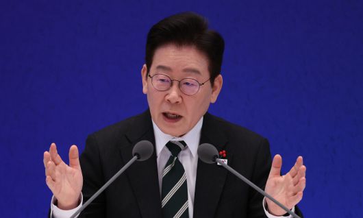 이재명 대통령이 21일 청와대 영빈관에서 2026 신년 기자회견 '함께 이루는 대전환, 모두 누리는 대도약'에서 기자의 질문에 답하고 있다. 청와대사진기자단 |