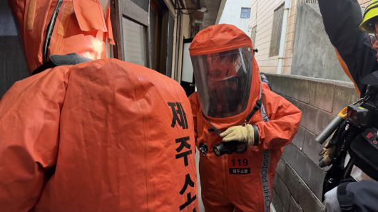 오늘(21일) 오후 2시 40분쯤 제주시 용담동 한 자동차 배터리 취급 업체 건물 지하 1층에서 황산 10L가 누출되는 사고가 발생했습니다.