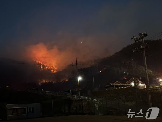 (광양=뉴스1) 최성국 김성준 기자 = 전남 광양시 옥곡면 인근 야산에서 대형 화재가 발생해 현재까지 인근 주민 65명이 긴급대피했다.
