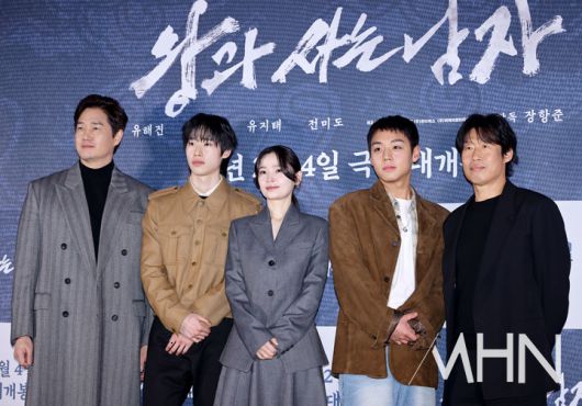 (MHN 이지숙 기자) 배우 유지태, 김민, 전미도, 박지훈, 유해진이 21일 오후 서울 삼성동 메가박스 코엑스에서 열린 영화 '왕과 사는 남자' 언론 시사회에 참석해 포즈를 취하고 있다.