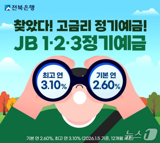 이번 이벤트는 'JB 1·2·3 정기예금' 가입 시 기본 금리 연 2.6%에 우대조건을 충족하면 최대 연 0.5%를 추가로 받을 수 있다.