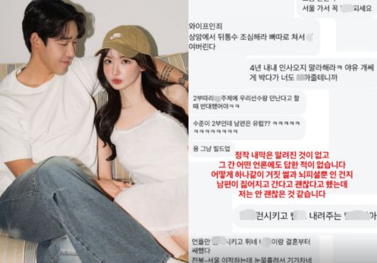 이와 함께 그는 자신을 향해 쏟아진 악성 DM을 캡처해 박제했다. 캡처본에는 "와이프인 죄. 상암에서 뒤통수 조심해라 빠따로 쳐서 X여버린다", "소름 돋는다. 서울 가서 꼭 XX되세요", "언플만 시키고 튀네 니X이랑 결혼부터 쎼했다. 기가차네 XX이"라고 원색적인 욕설과 비난이 담겨 있어 눈길을 끌었다.