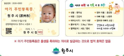 강원 원주시 ‘아기 주민등록증’. 원주시 |