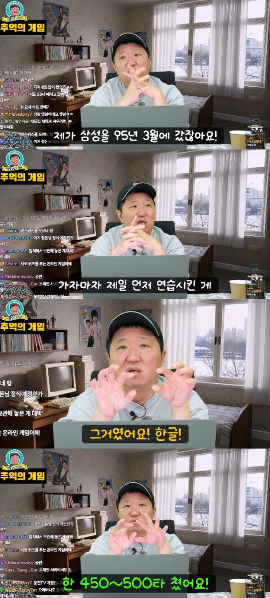 정형돈은 "제가 삼성을 95년 3월에 가지 않았냐. 가자마자 가장 먼저 연습시킨 게 한글이었다"며 과거 삼성전자에서 근무하던 당시를 회상했다.