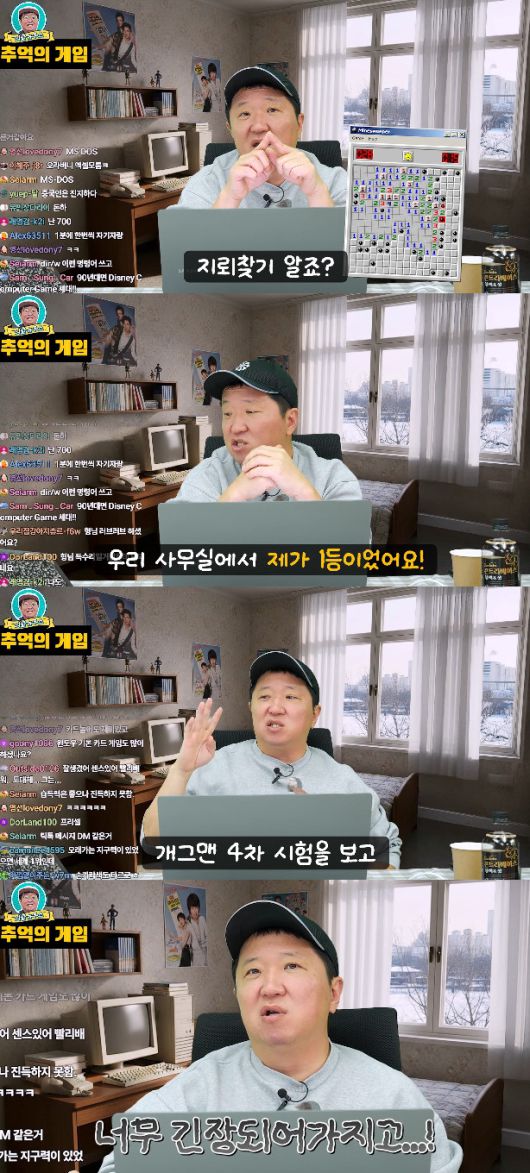 정형돈은 "그리고 '지뢰찾기' 아시냐. 제가 우리 사무실에서 1등이었다"며 "우리 사무실 전체 1등이었다. 회사에서 밤 근무를 돌면 밤 10시부터 새벽 6시까지 기계가 고장나지 않는 이상은 크게 할 일이 없다. 그러면 그냥 앉아서 '지뢰찾기' 하고 그랬다"고 밝혔다.