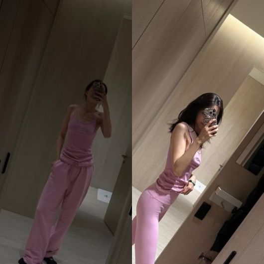 공개된 사진 속 손나은은 핑크 컬러의 슬리브리스 톱과 트레이닝 팬츠를 매치한 채 거울 앞에서 포즈를 취하고 있다. 편안한 차림임에도 불구하고 슬림한 바디라인과 탄탄한 실루엣이 단번에 시선을 사로잡는다.
