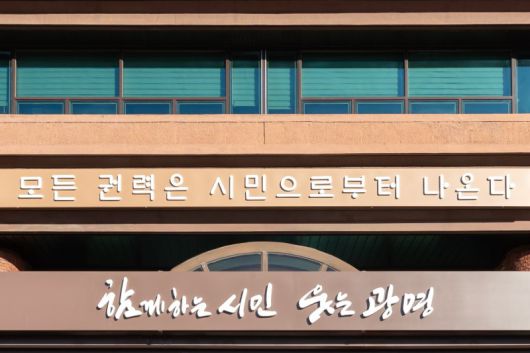 박승원 광명시장은 최근 파이낸셜뉴스와의 인터뷰에서 광명시가 전국 지방정부 가운데 새로운 표준으로 평가받고 있다고 설명했다. 광명시 제공 박승원 광명시장의 '시민주권' 철학이 담긴 '모든 권력은 시민으로부터 나온다' 글새김 광명시 제공 |