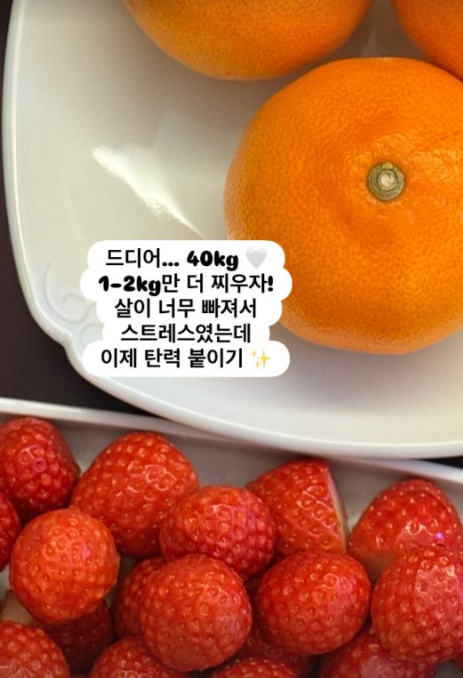 과거 자신의 계정에 몸무게가 38kg대까지 내려갔다고 언급했던 만큼, 40kg 진입 소식을 스스로 축하하며 조금 더 살을 찌워 건강한 몸을 만들겠다는 의지를 내비쳤다.